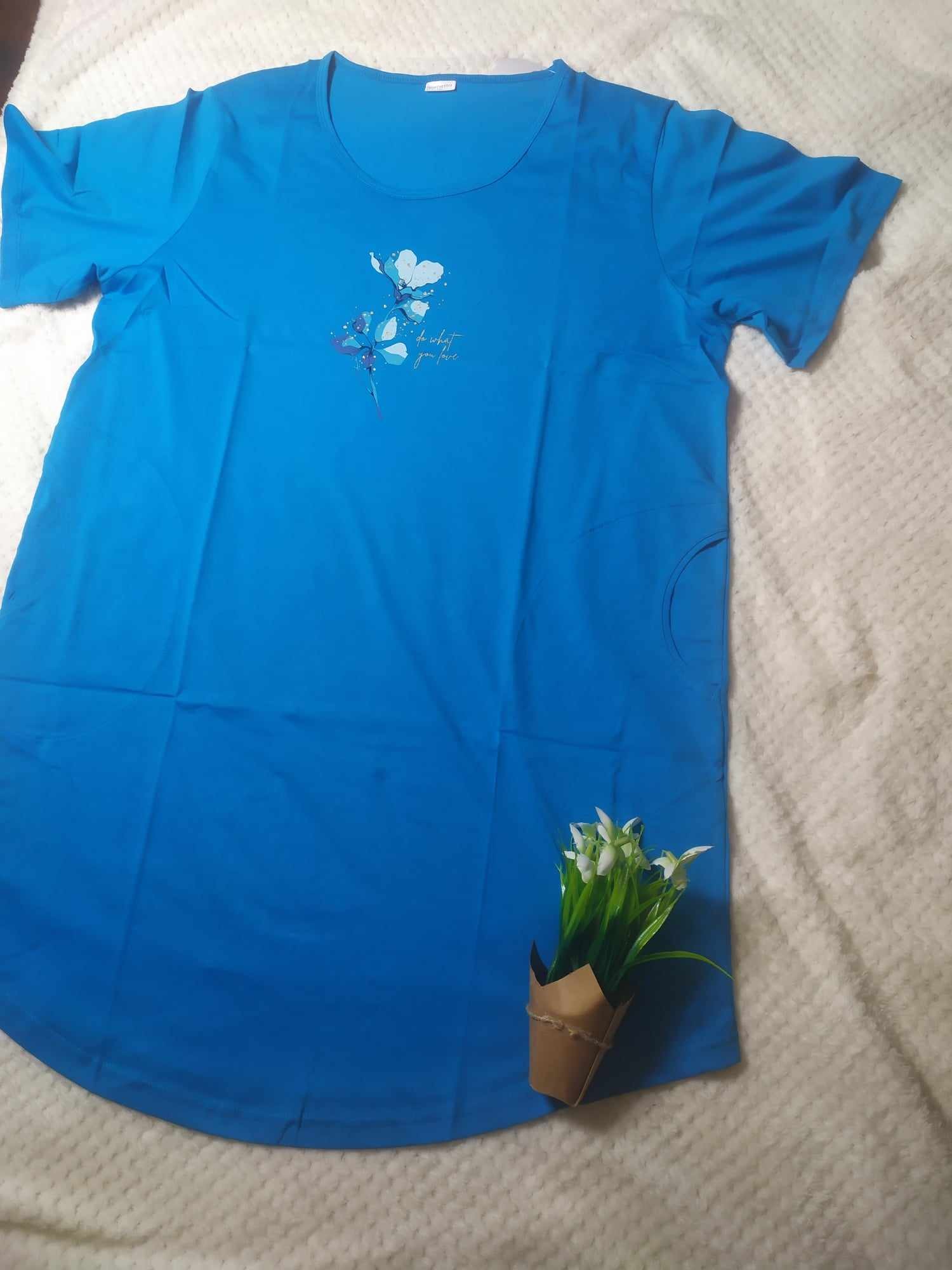 Koszula nocna w kolorze niebieskim. Wysokiej jakości bawełna powoduje, że koszulka jest trwała, wygodna w noszeniu i przyjemna dla skóry. Dobrze się pierze.