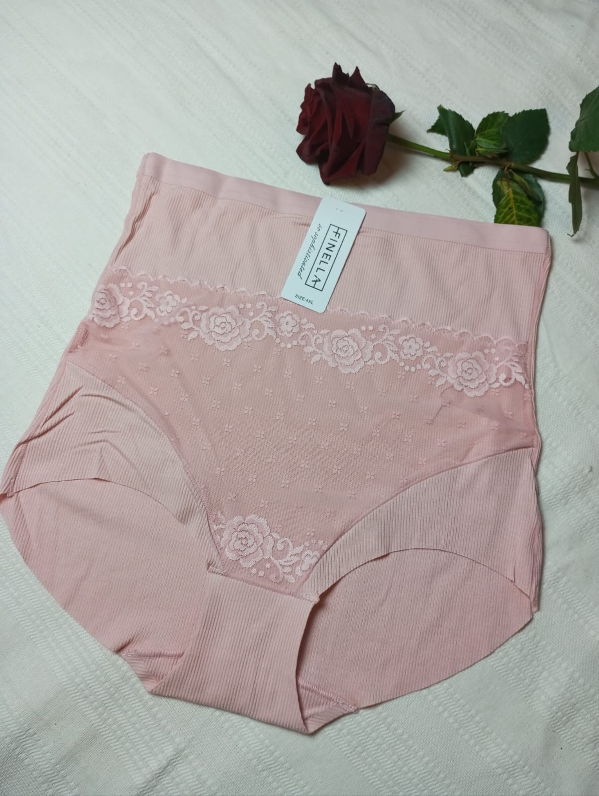 Tanie figi damskie wykonane z miękkiej i delikatnej wiscozy. Dzięki swojemu krojowi doskonale modelują sylwetkę i podkreślają jej walory. Są doskonałym wyborem jeśli cenimy wygodę, wysoką jakość, naturalne materiały. Przód ozdobiony elegancką koronką. Te damskie figi mają wysoki stan, przy nogach są zabudowane, tył gładki.