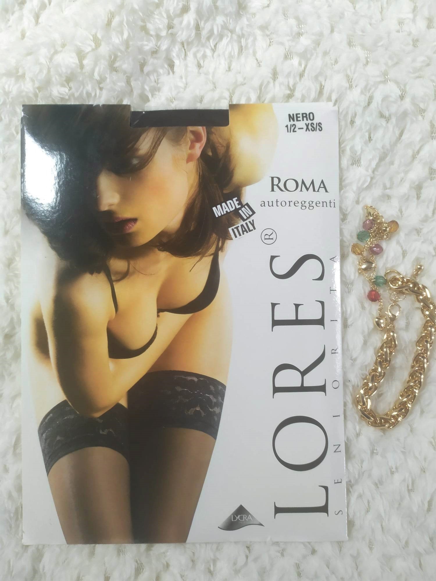 Proponujemy gładkie pończochy samonośne. Pod koronką znajdują się dwa paski silikonowe, dzięki którym pończochy dobrze trzymają się na nodze.