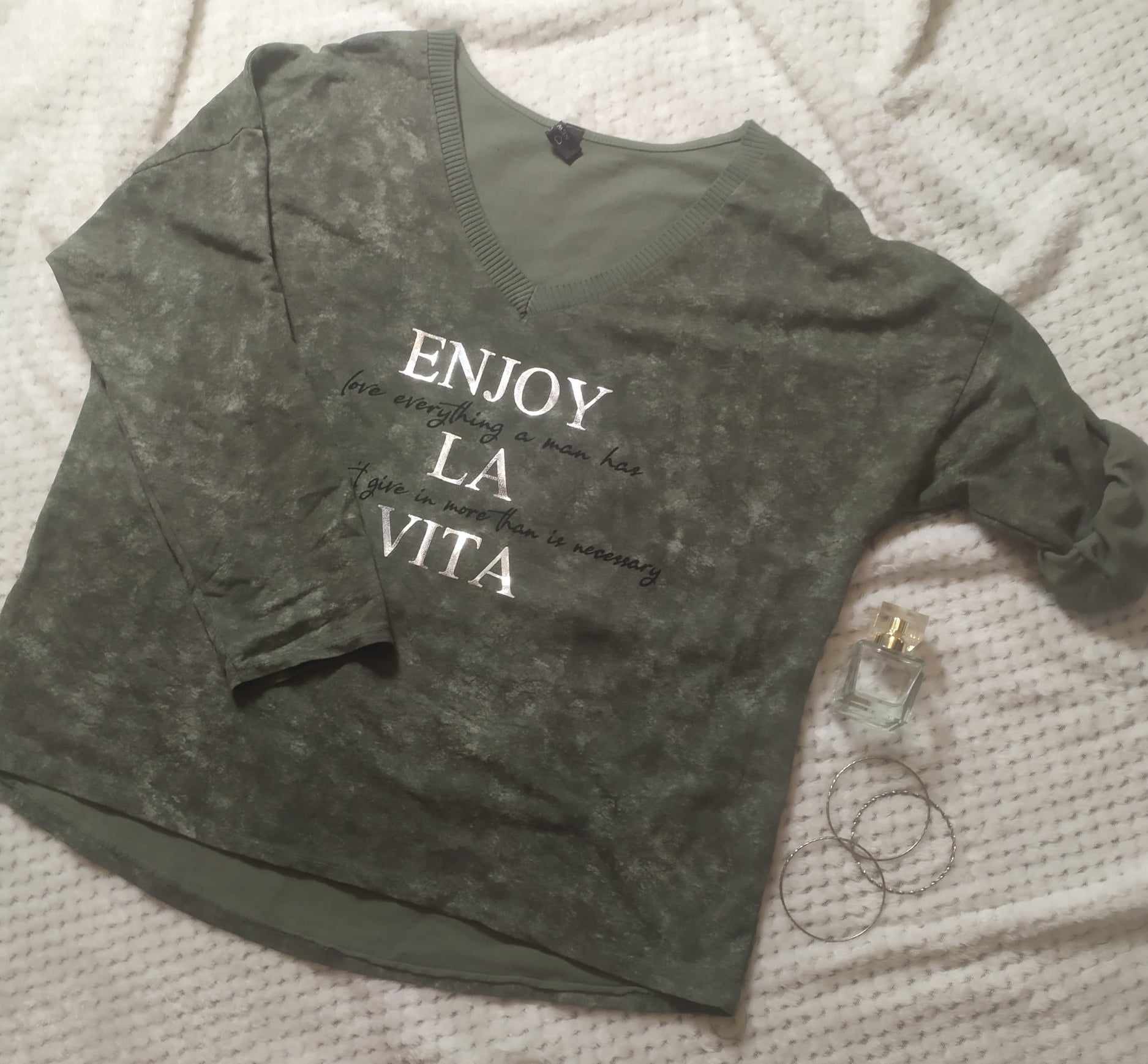 Proponujemy bluzkę w kolorze szarym. Dekolt jest w kształcie serek. Rękaw długi, który możemy nosić podwinięty.Tył bluzki jest trochę dłuższy od przodu co idealnie maskuje niektóre niedoskonałości. Bluzkę możemy ubrać do spodni i do spódnicy.