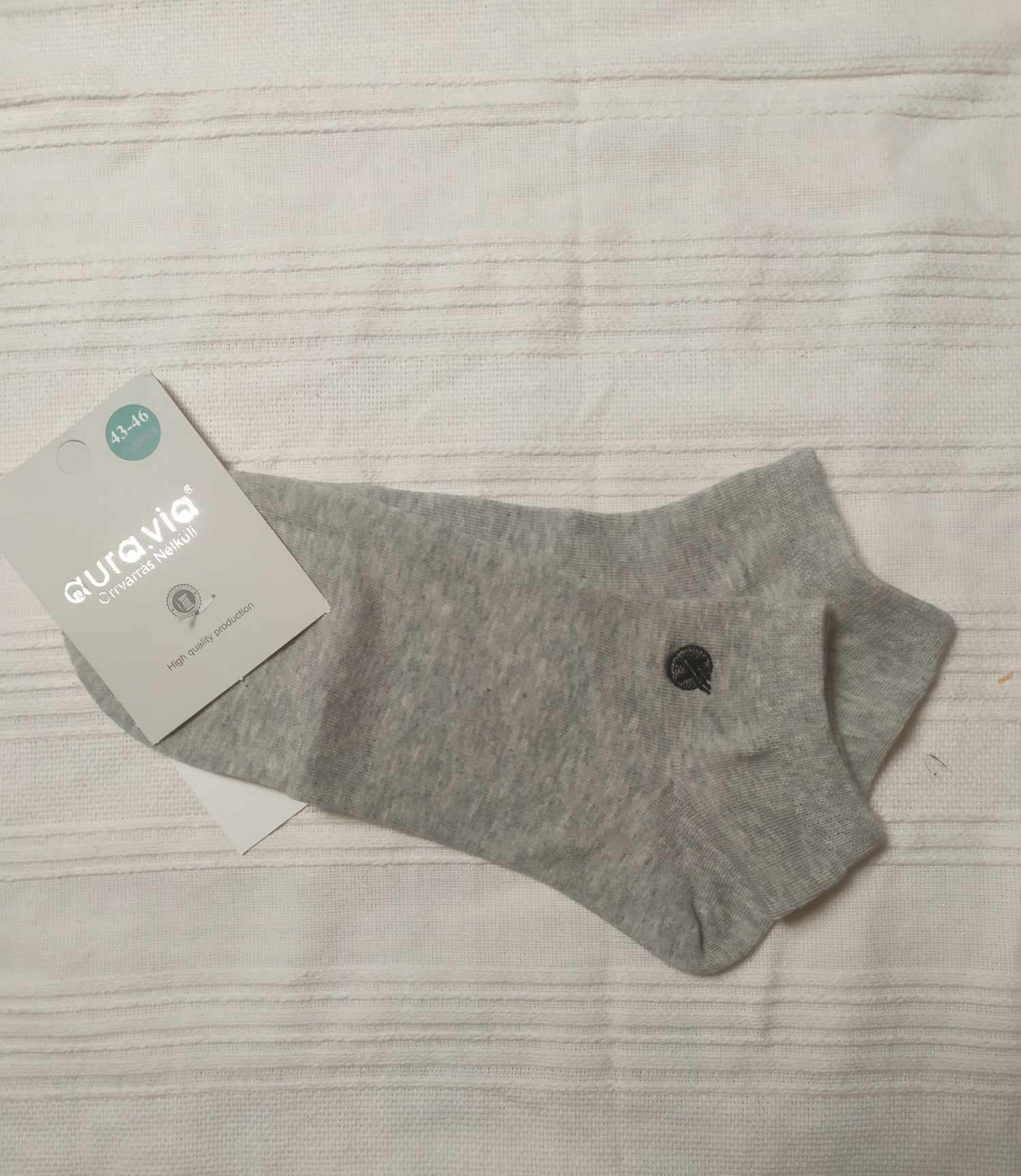 Klasyczne stopki w kolorze popielatym.