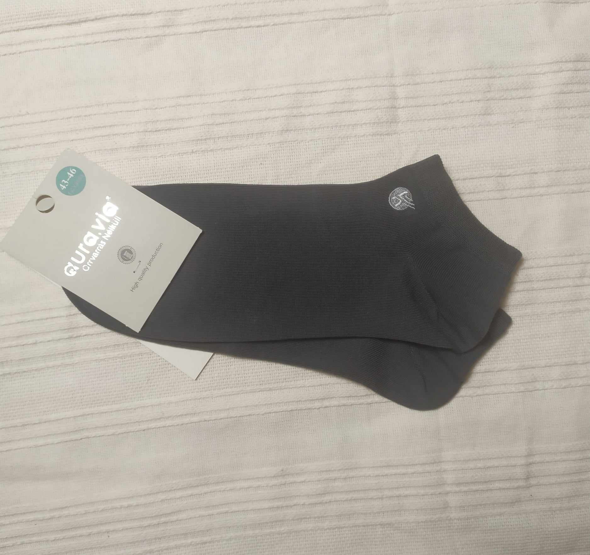 Klasyczne stopki w kolorze grafitowym.