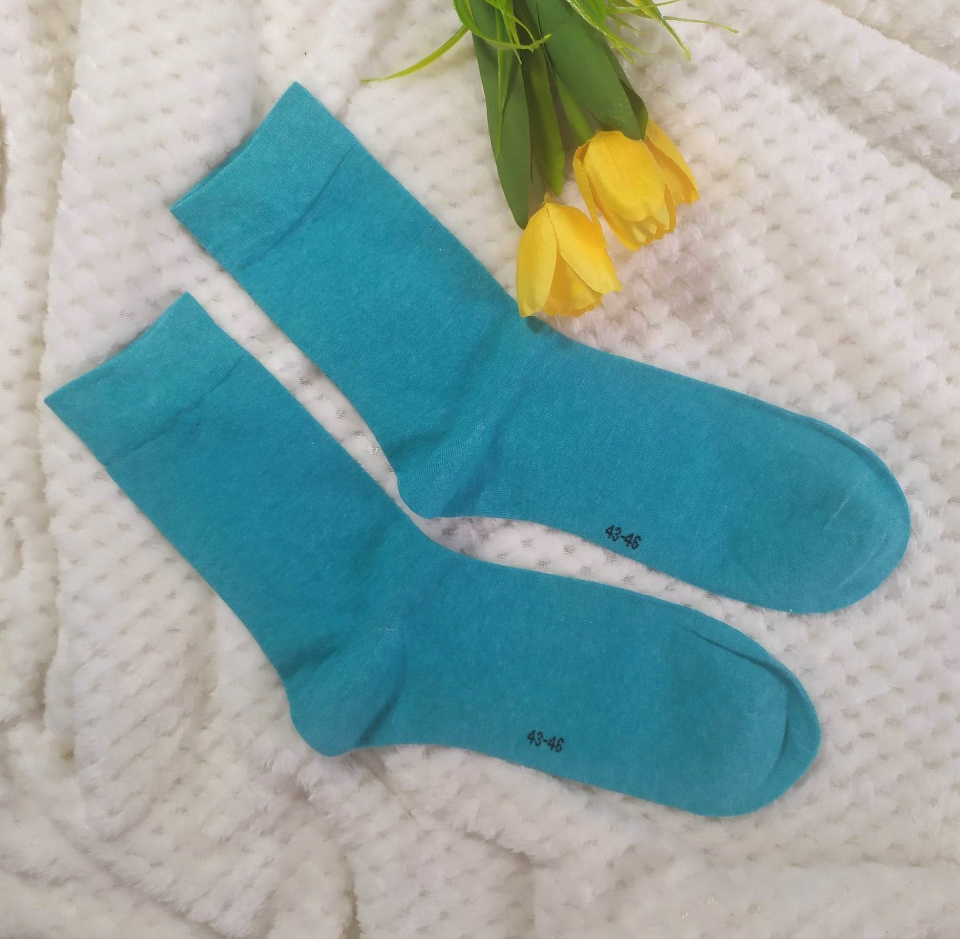 Proponujemy kolorowe, gładkie skarpetki męskie. Wykonane są z dobrego gatunku bawełny.
