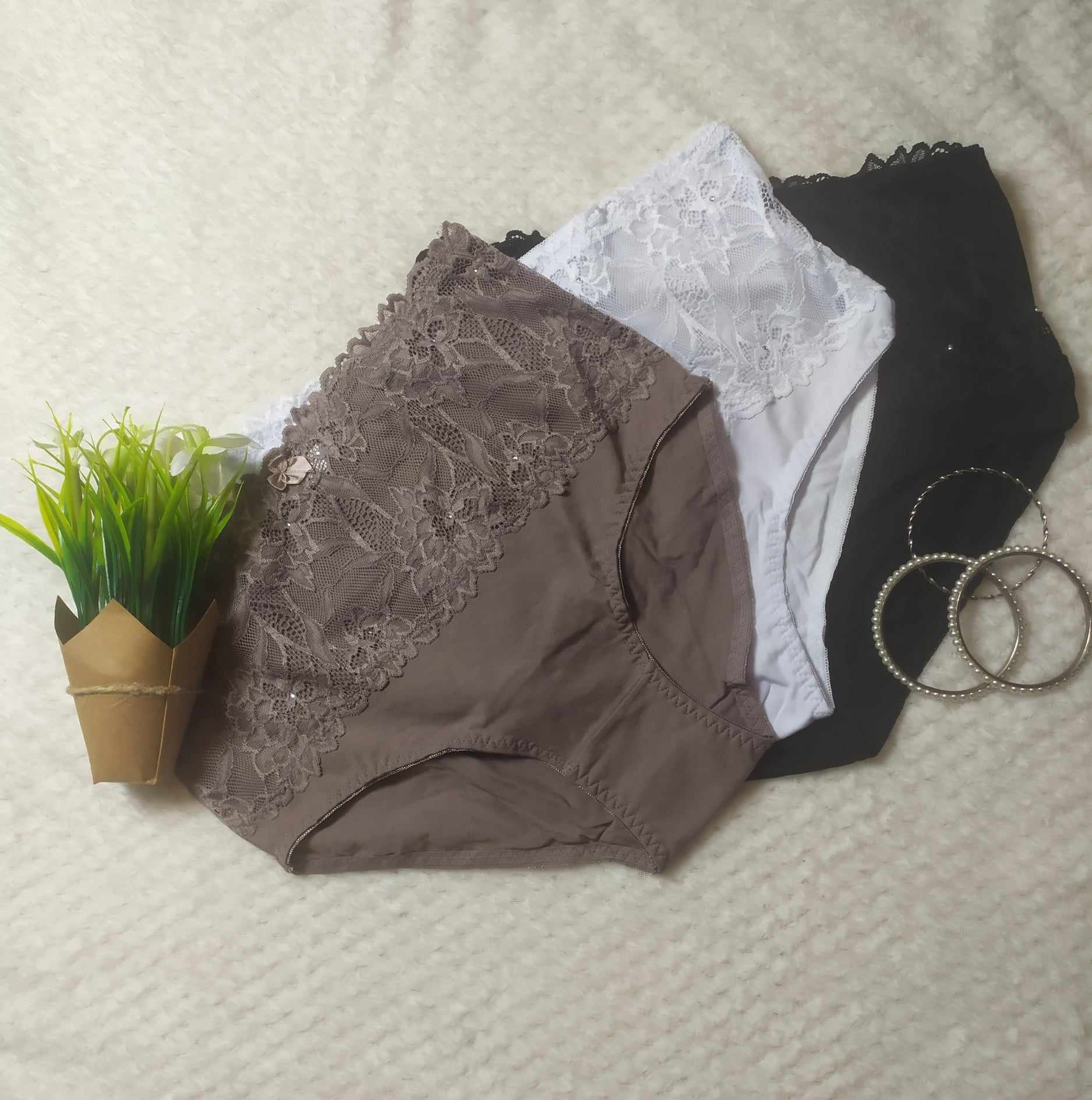 Oferujemy figi damskie wykonane z bawełny. Przód produktu ozdobiony jest koronką. Tył gładki, pełen. Majtki te dostępne są na naszej stronie jako pojedynczy produkt, ale również w postaci 3-paku. W komplecie znajdują się kolory biały, czarny, ciemnobeżowy.