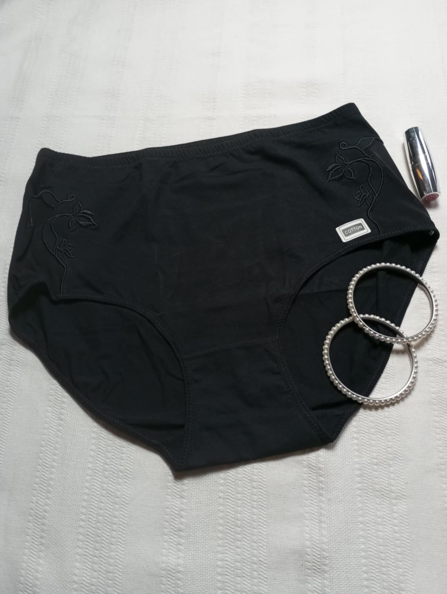 Figi damskie wykonane z bardzo dobrej przędzy bawełnianej. Mają wysoki stan, boki ozdobione delikatną koronką, lekko ściągają brzuch. Tył majtek pełen, gładki.