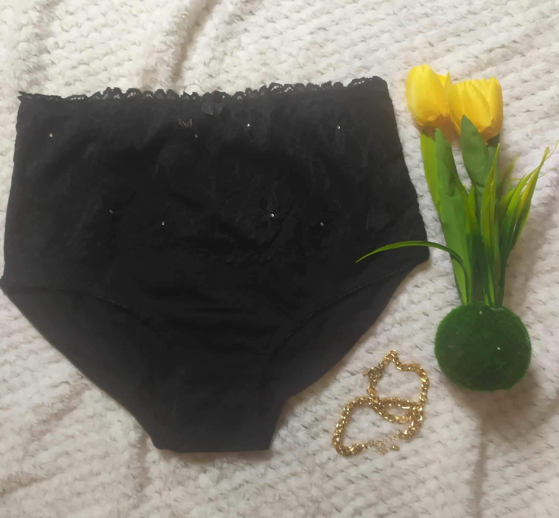 Majtki z wysokim stanem w kolorze czarnym.