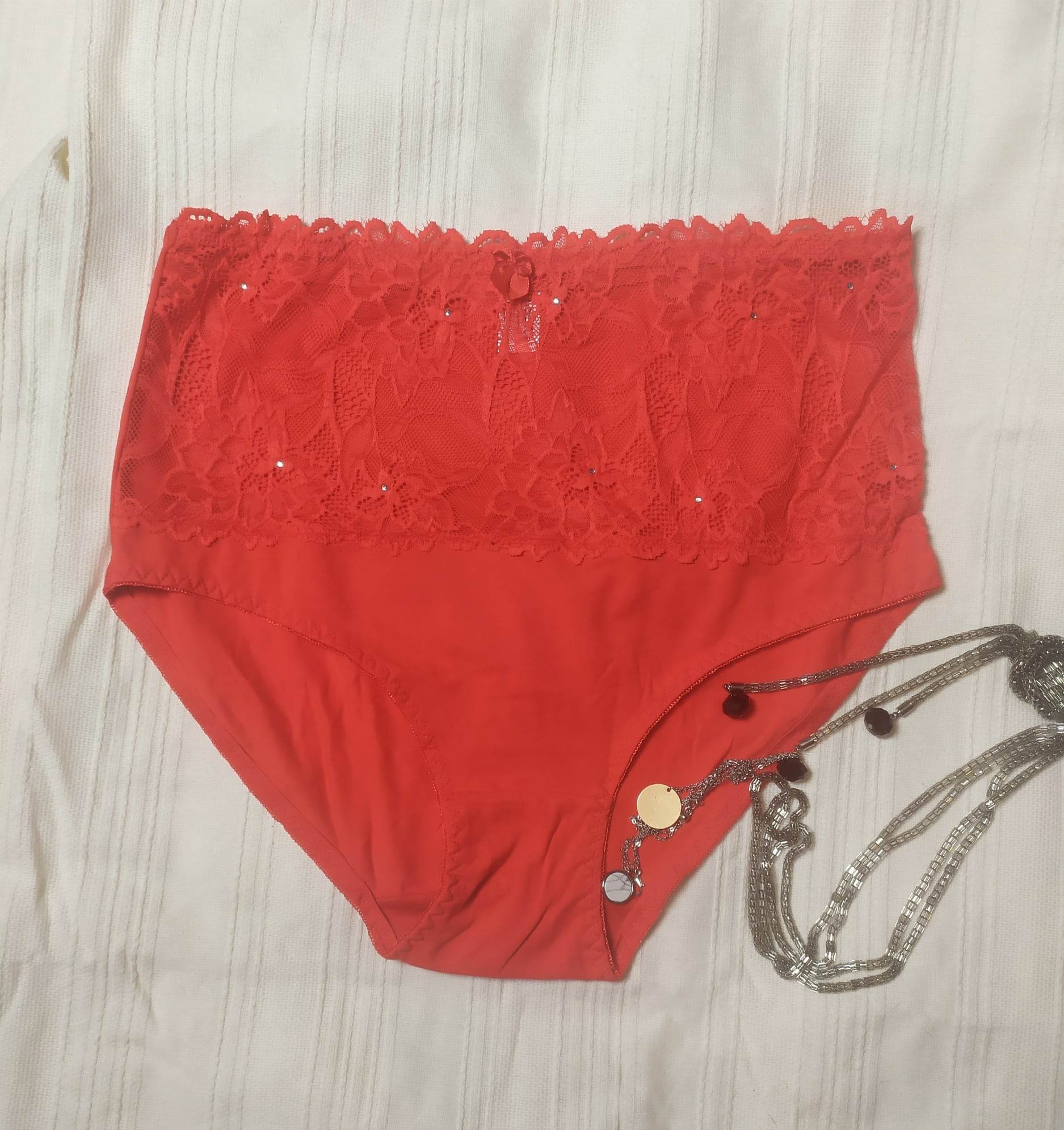 Proponujemy majtki bawełniane wykończone z przodu koronką. Mają one wysoki stan, który lekko przytrzymuje brzuch.