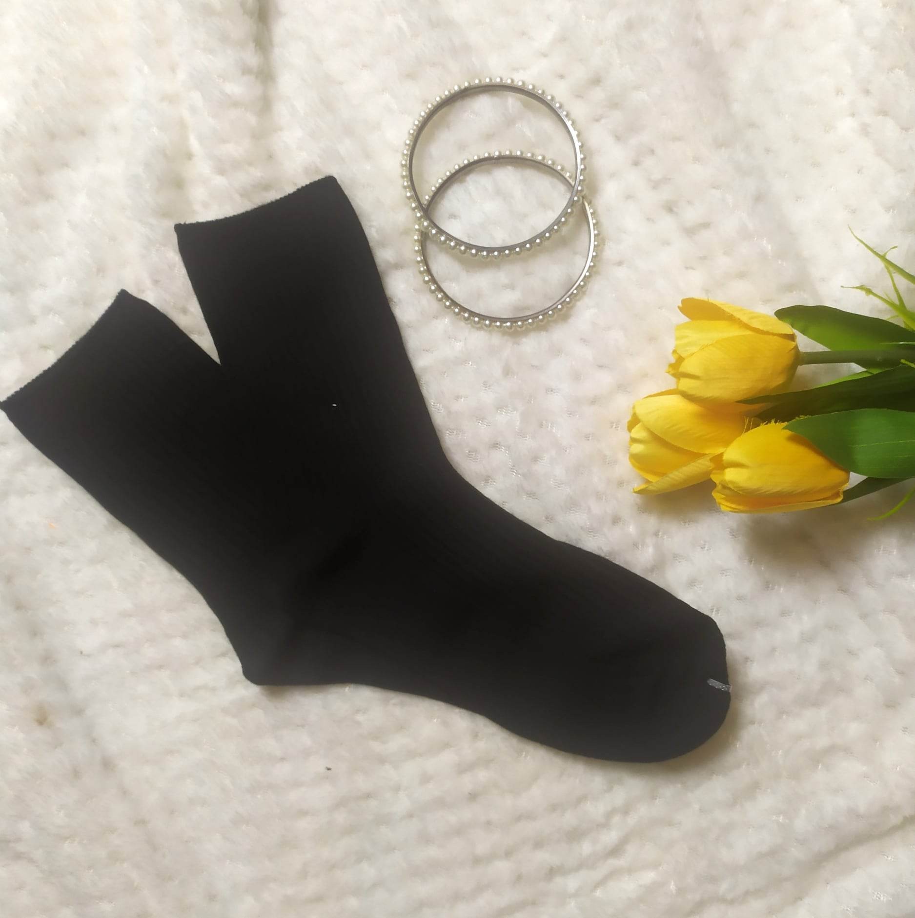 Wygodne skarpetki damskie w kolorze czarnym. Jakość bawełny powoduje, że komfortowo się je nosi.