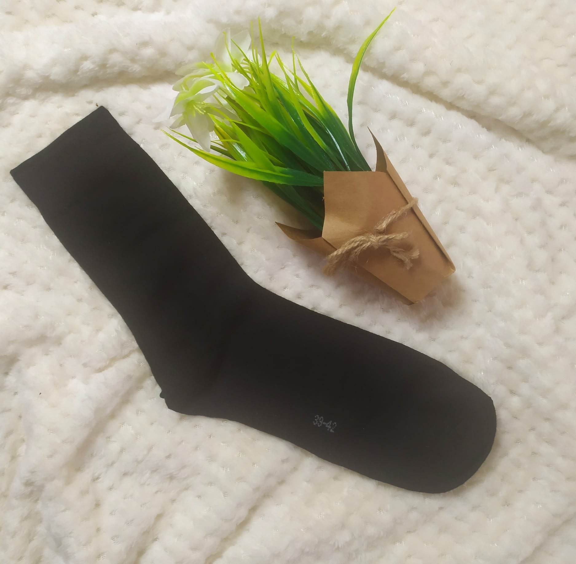 Proponujemy czarne, gładkie bambusowe skarpetki. Mają szeroki ściągacz. Wykonane są z dobrego gatunku włókna, dzięki czemu stopa czuje się w nich komfortowo i wygodnie.