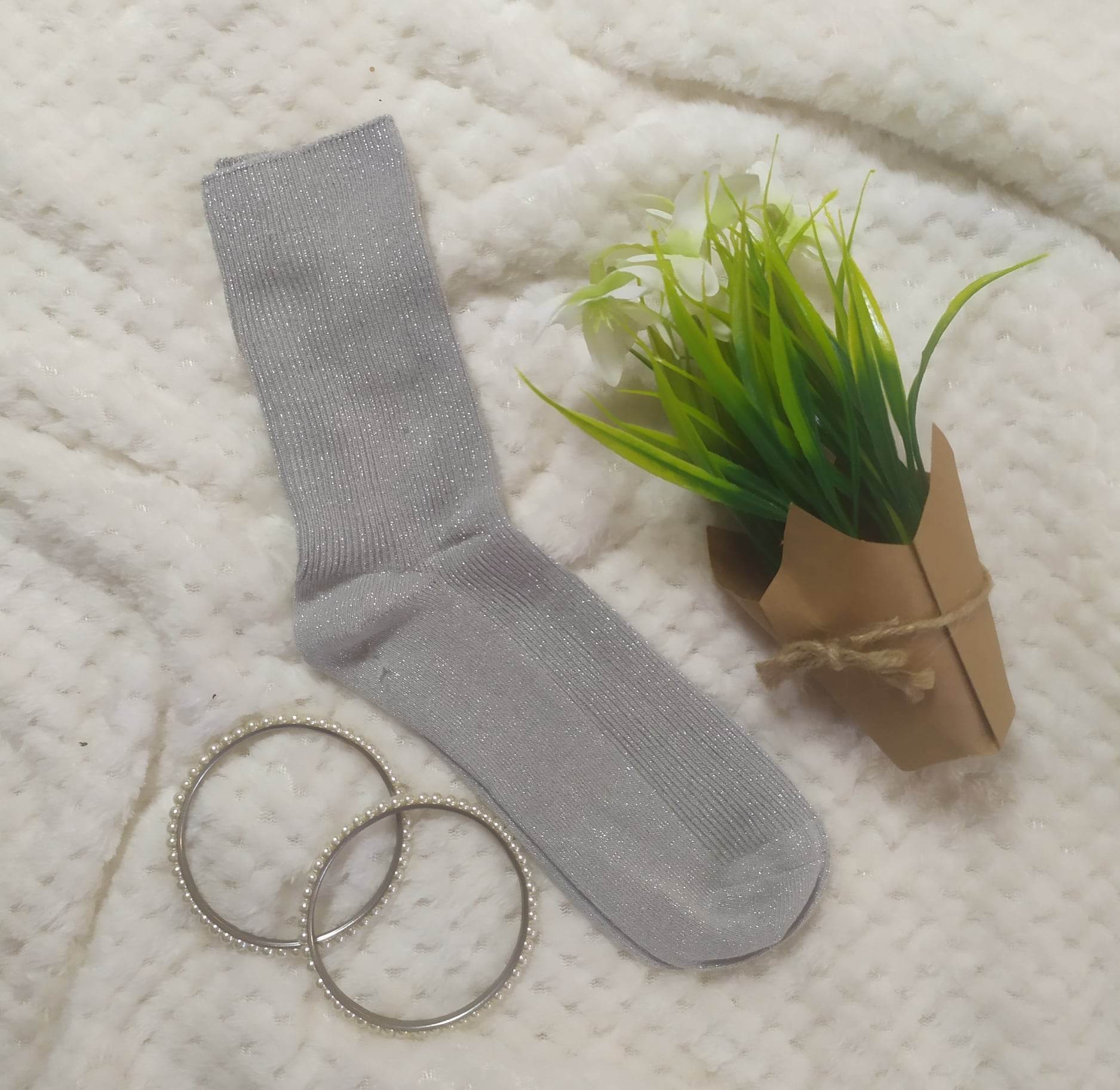 Skarpetki ze srebrną nitką.