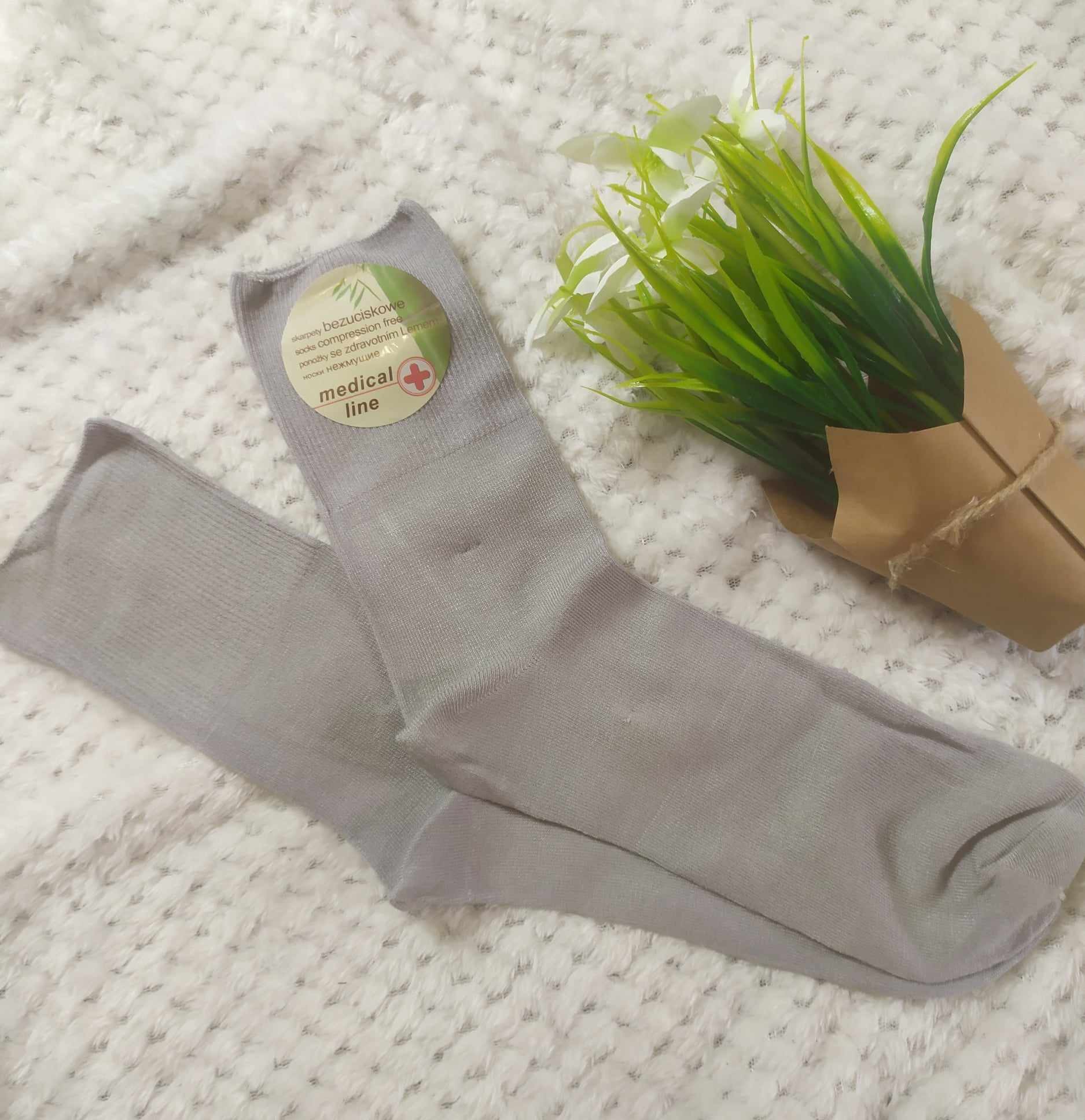 Proponujemy skarpety wykonane z delikatnego włókna bambusowego. Mają ściągacz lekki, bezuciskowy. Mogą je nosić osoby o wrażliwych stopach.