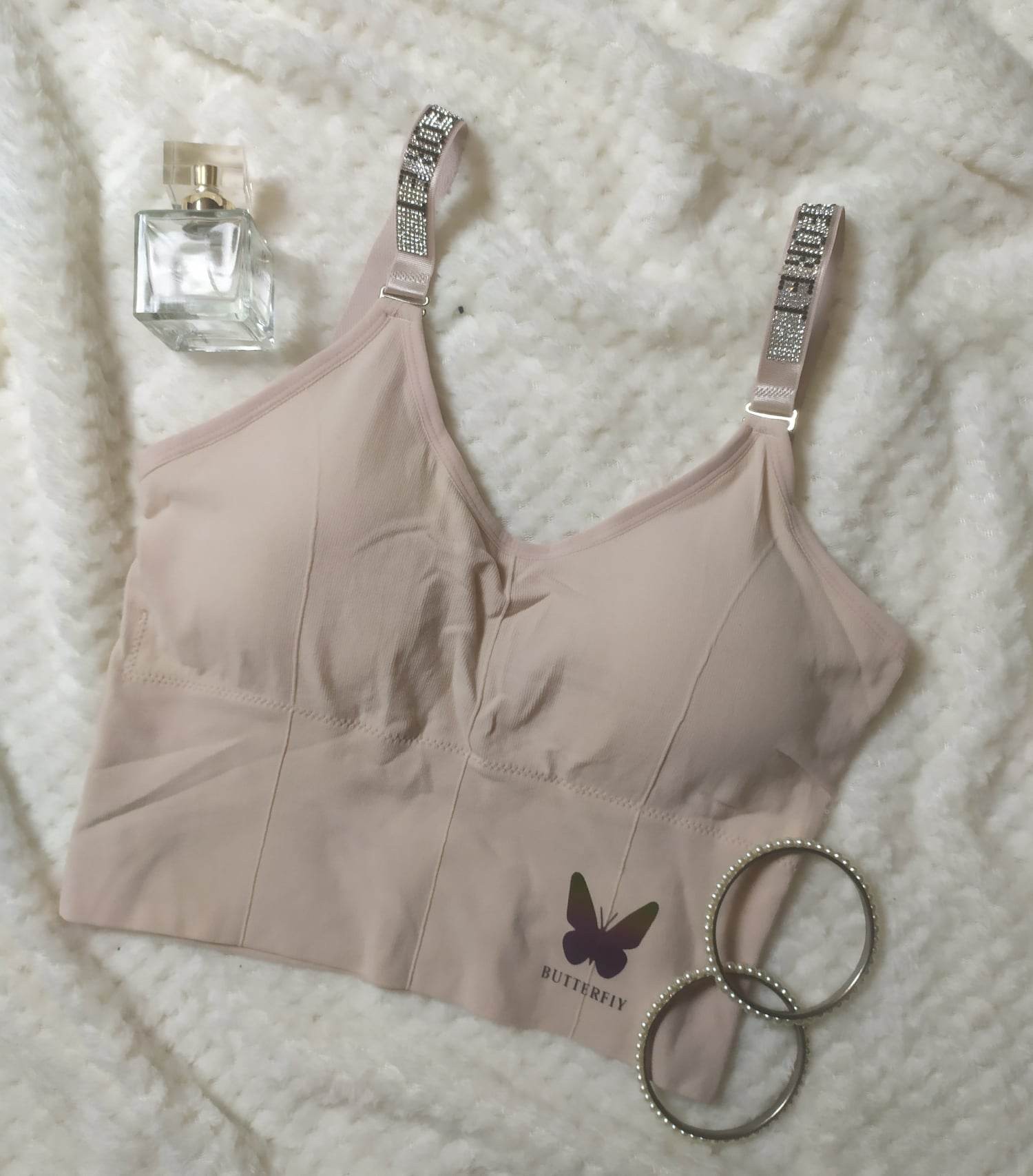 Proponujemy stanik sportowy. Ma przedłużony stan. Naramki modnie ozdobione, regulowane. Przód usztywniony wkładkami, które można wyjąć. Stanik idealnie nadaje się do biegania lub innej aktywności fizycznej.